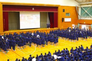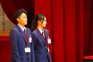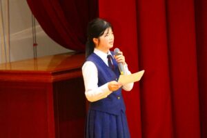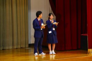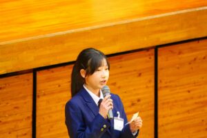 冒頭の生徒会長挨拶では、元気のよい発声で「こんにちは~!」の掛け声にはたいへん新鮮さがあり、会場からの拍手はいつも以上に大きく感じられました。