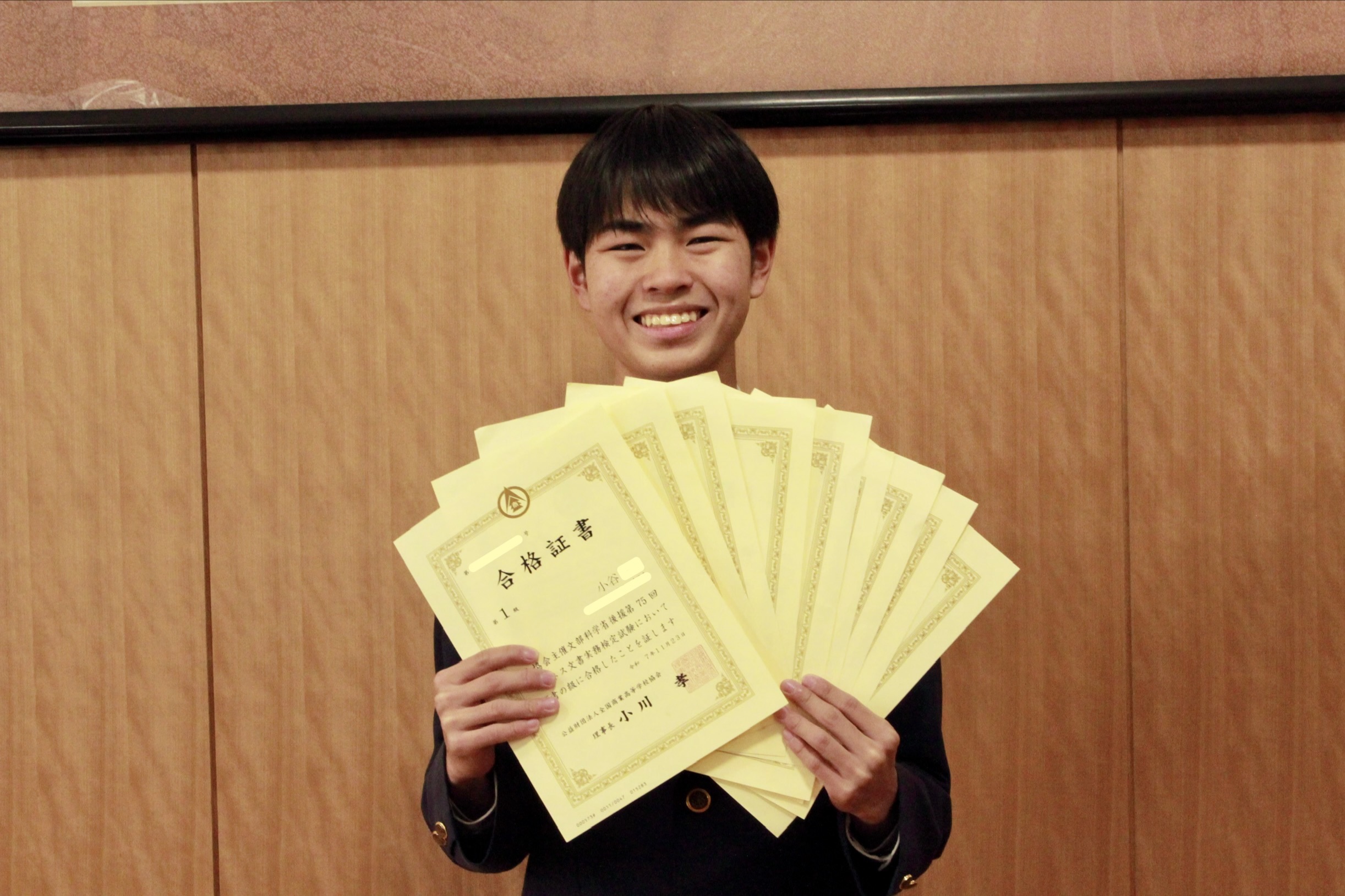 商業科3年生の小谷くんが、1月の情報処理検定1級に見事合格。