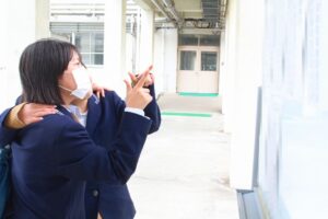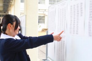 今日は県立高校入試合格発表の日。例年どおり、午前9:00から学校の中ほどに設置された合格発表板と受検生に事前に伝えられているWebサイトにて発表されました。Web発表が行われるようになって来校者が少なくなりましたが、記念に掲示板の前で記念写真を撮られる方も多く、最後まで倉商の受検をあきらめず、一生懸命頑張った思いがよく伝わってきます。掲示板前ではご本人の了解を得て、喜びで笑顔でいっぱいの写真を撮影させていただきましたが、3年後の卒業アルバムまでの秘蔵とします。今回の『倉商ブログ』では後方から喜びの様子をお伝えします。