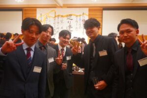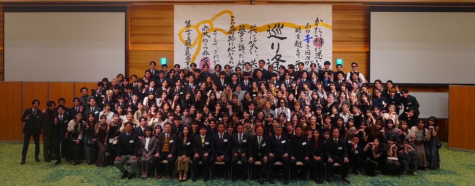 令和8年1月12日(月)、倉敷アイビースクエアーのエメラルドコートにて、第75期生が「二十歳の集い」を開くことができました。180名程の参加者で大盛会となりました。高校時代を思い出しながら会話を弾ませました。思い出ムービーを見たり、ビンゴゲームを行ったりと充実した2時間を過ごしました。
