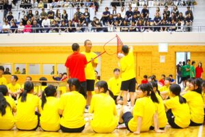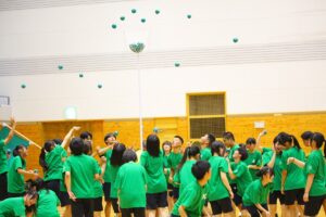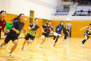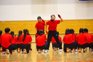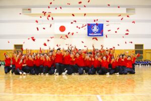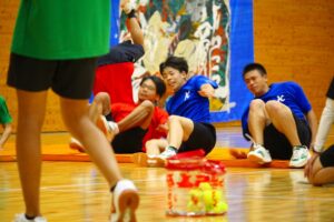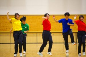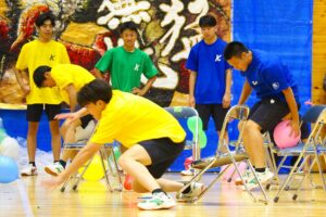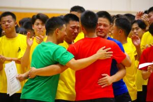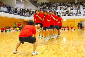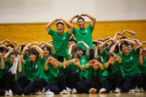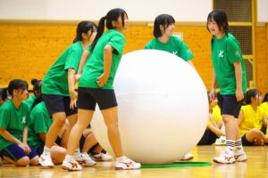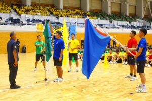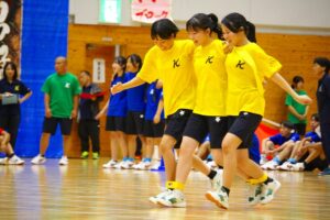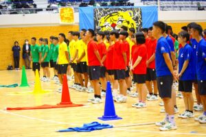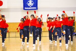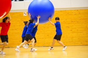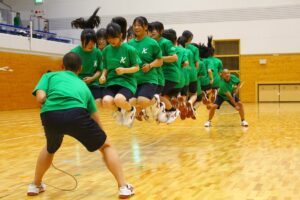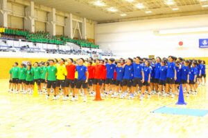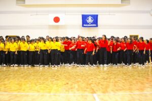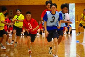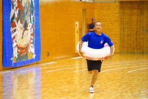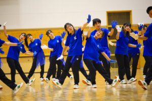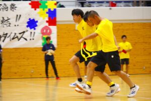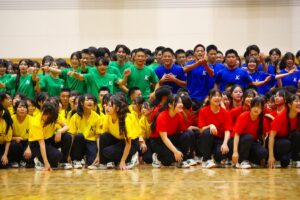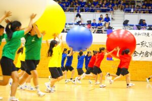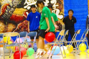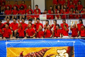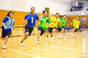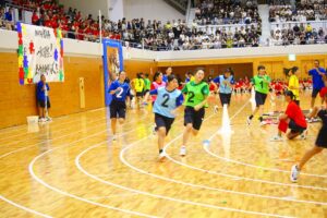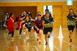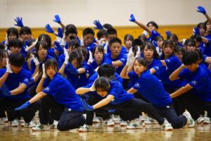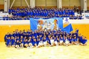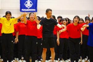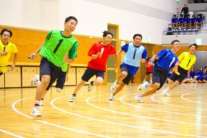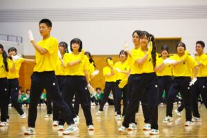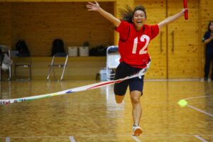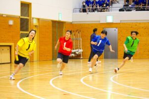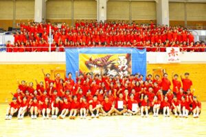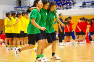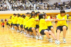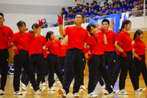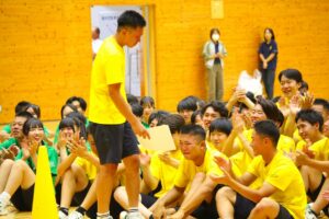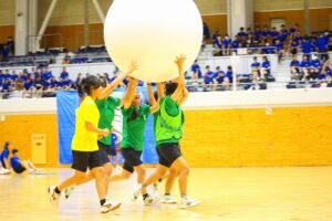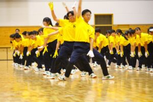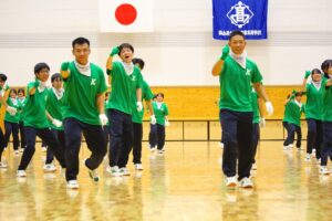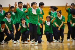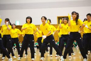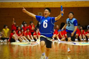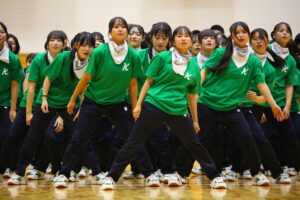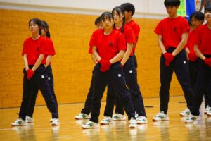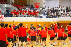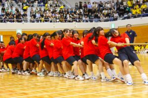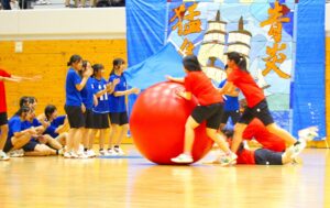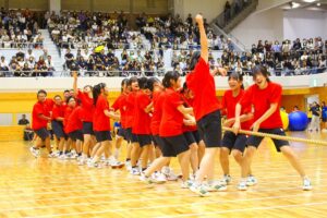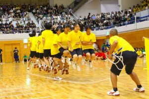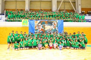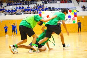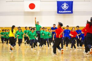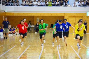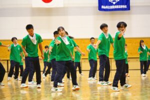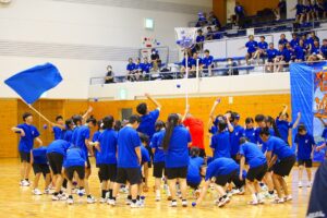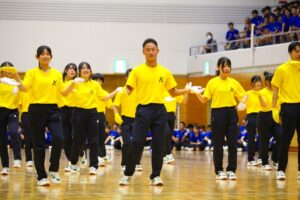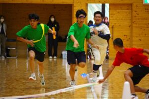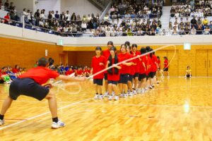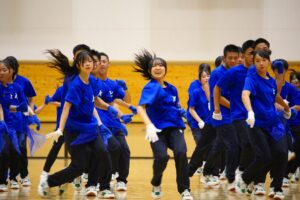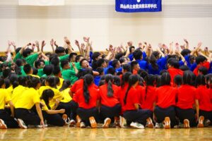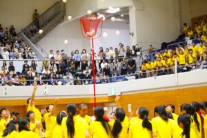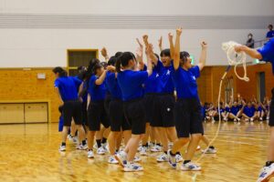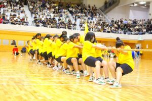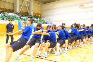 倉商祭最終日となる『体育の部』は、舞台を水島緑地福田公園体育館に移して行われました。水島緑地福田公園体育館で『体育の部』を行うのは、今年で4年目になります。最終日はあいにくの雨模様になりましたが、天候に左右されない学校行事の実施や熱中症対策等を配慮して行われています。