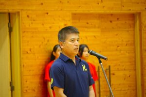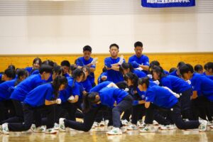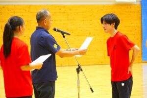 大会委員長より開会宣言があり、倉商祭『体育の部』は始まりました。副校長先生から、「今日は早朝からこの体育館は、3年生のリハーサルで大変な熱気に包まれていた。『文化の部』では最高のひとときを過ごすことができたと思うが、昨日までと同様のエネルギーを継続して発揮して欲しい。相手と競うことが多い一日となるが、互いのリスペクト精神を忘れず、チーム一丸となって戦ってもらいたい。今日の開催にあたり、多くの関係者が準備してきた行事であることも忘れず、感謝の気持ちをもって取り組んで欲しい。今日が皆さんにとって最高の一日となるよう願っている。」とご挨拶がありました。