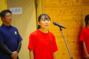 審判委員長より競技上の注意が伝えられ、生徒代表による『選手宣誓』がありました。各競技の様子は、大会プログラム順により写真にてご紹介します。
