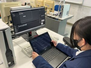「私は所属しているワープロ部から依頼を受けて、大会を想定して時間を図るタイマーとBackspaceキーを押した数をカウントするプログラムを作成しました。なかなか簡単には作れず、試作品を作っては部員から評価を受けて改善するというやりとりを何回も繰り返しました。困ったときは、同じ講座を受けている仲間や生成AIに相談してなんとか完成することができました。完成したプログラムは、部活動でたくさん活用してもらっています。達成感はもちろん、部員に「ありがとう!」と感謝されたときは本当にうれしかったです!」