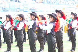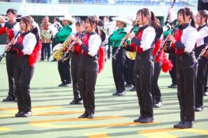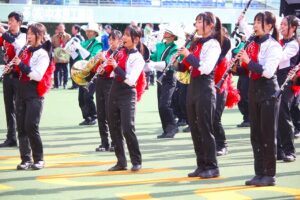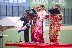 11:00からのオープニングセレモニーでは、倉敷翠松高校マーチングバンド部の皆さんと倉敷商業高校吹奏楽部2校で、更に倉敷市を拠点としてダンス活動をされている「D’s mix」の皆さんと担当しました。数年後に二十歳を迎える本校在校生たちも、その雰囲気を体験できた貴重な一日となりました。今年の二十歳の集い実行委員会へは、本校卒業生4名の先輩方が活躍されていました。