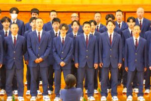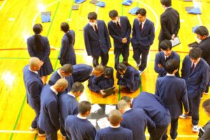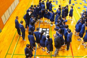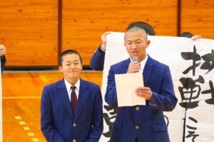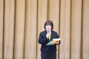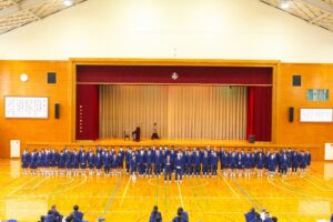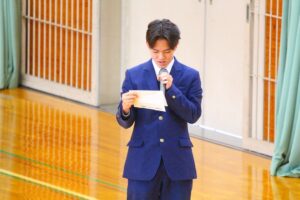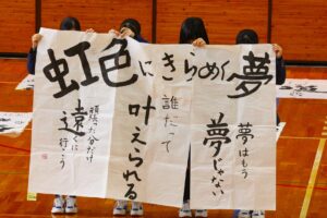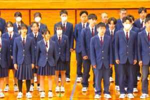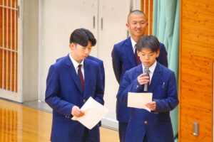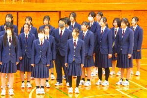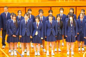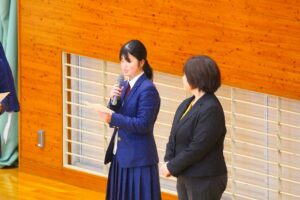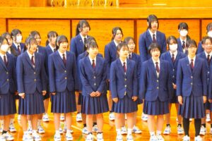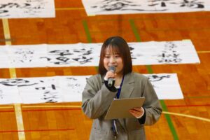 倉敷商業高校では2年生の「芸術」で選択した3科目「音楽・美術・書道」の集大成に「芸術科発表会」を開催しています。最初に教科主任の先生から説明があり、その後科目毎に発表が行われました。発表内容はたいへん素晴らしい作品ばかりで、発表後に作品投票が行われ、結果は後日発表されます。