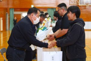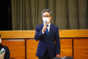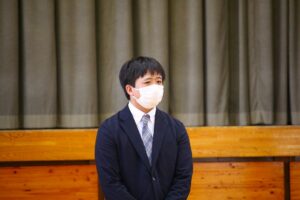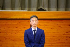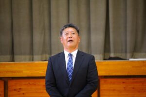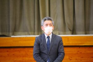令和7年度をもって本校を転退任される先生方をお送りするセレモニーが行われました。今日のセレモニーには、ご都合により欠席の先生もおられますが、13名の先生方をお送りすることになりました。司会進行の先生のもと、校長先生から転退任される先生方のご紹介がありました。転退任者を代表して、笠作先生と岡村先生から長期間お勤めの思いを聞かせていただきました。